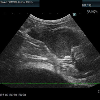 その後、血液検査、腹部超音波検査、腹腔内の腫瘤の細胞診検査(FNA)、腫瘤から採取した細胞の猫コロナウイルス検査をさせて頂きました。